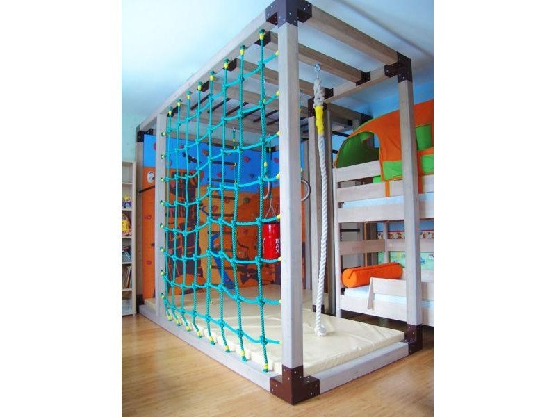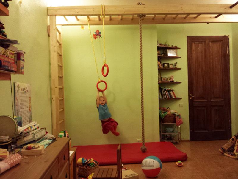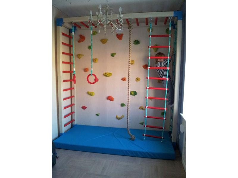 Детские площадки для квартиры могут быть похожи на лаконичный гимнастический зал или вольер для мартышек… Если надо, то потолок будет небом, а паркет газоном. Воображайте дорогие взрослые, оглядывая пока еще пустую комнату, предназначенную для детской. Полистайте журналы, загляните в интернет, посетите зоопарк… Потом звоните нам. Уж мы то развернемся на славу.